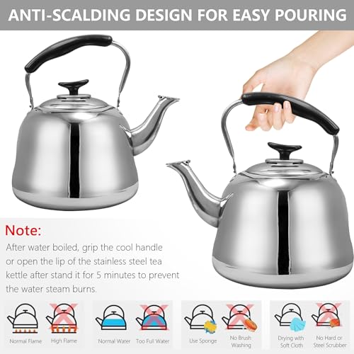 - سعة كبيرة: غلاية شاي من الفولاذ المقاوم للصدأ تحمل ما يصل إلى 5 لتر من الماء، الحجم الكبير يسمح بتخمير أكواب متعددة من الشاي أو القهوة في دفعة واحدة، هذا الحجم الكبير يسمح بتحضير عدة أكواب من الشاي أو القهوة دفعة واحدة، والفتحة الكبيرة تجعل من السهل ملء الغلاية وتنظيفها.