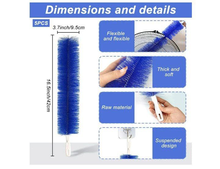 - 🔄 Flexible & Bendable Design for Ultimate Reach – The strong wire core allows you to bend and shape the brush exactly how you need it. Easily wrap it around ceiling fan blades, curve it into tight bottle openings, or angle it into narrow window frames. Designed to access hard-to-reach areas without strain, making deep cleaning faster and more efficient.