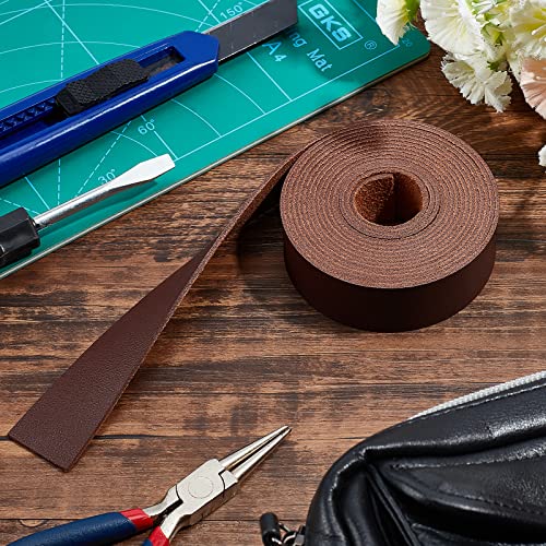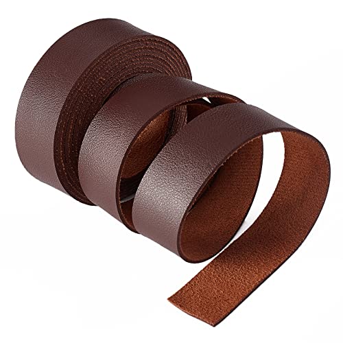 BENECREAT - بينيكريت حزام جلد بنمط ليتشي بعرض 1 انش وطول 98 حبل جلدي مسطح من جانب واحد لمشاريع الحرف اليدوية واطواق الحيوانات الاليفة والاحزمة والمجوهرات بني سارج