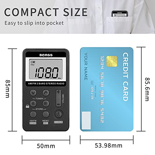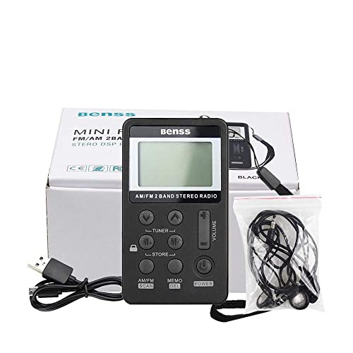 Benss - Benss Portable Radio Mini Radio Pocket AM FM Personal Radio DSP Digital Tuning Stereo Radio Mini Receiver with LCD Screen USB Rechargeable and Earphone for Walking Jogging 01-Black
