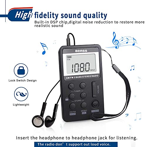 - [ Lock Switch Design ]: This AM FM Pocket Radio with lock key function which ensures you to listen to your favorite stations without any accidental operation in your pocket.