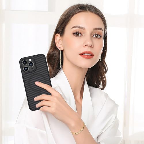 BENTOBEN - BENTOBEN Carbon Fiber for iPhone 15 Pro Max Case, iPhone 15 Pro Max Magnetic Case[Compatible with MagSafe] Slim Fit Smooth Shockproof Women Men Protective Case Cover for iPhone 15 Pro Max 6.7",Black