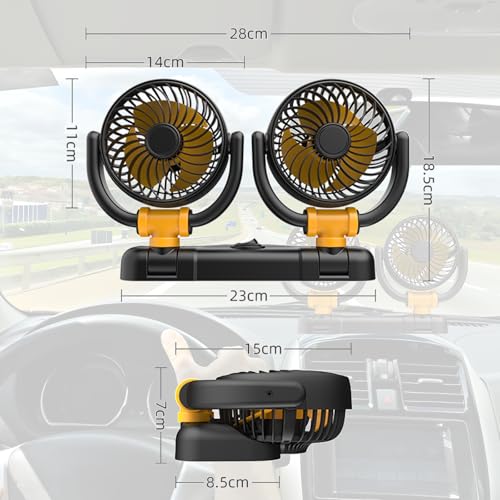 - 【360° Adjustable Heads】Maximise airflow with dual-head rotation— 360° manual tilt. Independently control each car cooling fan for personalised comfort.