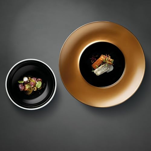 - SET INCLUDES: Porcelain 1x Deep plate 2", and 1x Bowl 2.25", Black & Gold