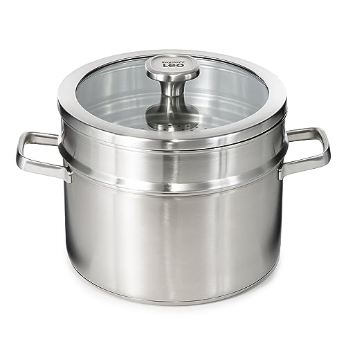 - HEALTHY COOKING: Perfect for the environment because of its recycled material. Perfect for healthy cooking, steaming vegetables, fish, or any kind of ingredients for your desired dish. This steamer insert can easily be placed on an 8" and 10" stock pots to steam all sorts of vegetables. Capsule base conducts heat fast and evenly for energy-efficient cooking. Wide handles for a safe grip.
