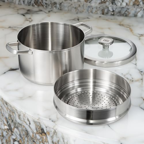 - RECYCLE AND DURABLE COOKWARE: Steamer Insert 10 inches, Graphite. Made of high-quality recycled 18/10 stainless steel with satin finish, ergonomically designed handle.