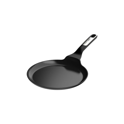 - Recycled cast aluminum Pancake pan with CeraGreen non-stick ceramic coating and a long handle for a safe and comfortable grip. Hanging loop that allows for easy storage and minimal kitchen space.