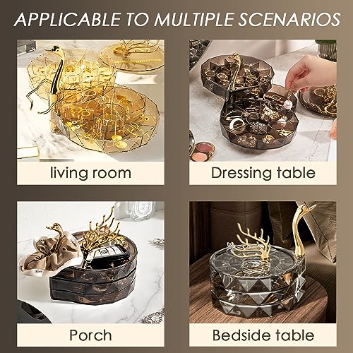 - 【فكرة هدية مثالية】: يمكن لمنظم المجوهرات الأنيق والعملي هذا الحفاظ على مجوهراتك سليمة وخالية من الغبار لفترة طويلة. يمكن أن يكون صندوق المجوهرات الجميل أيضًا هدية رائعة للفتيات والنساء