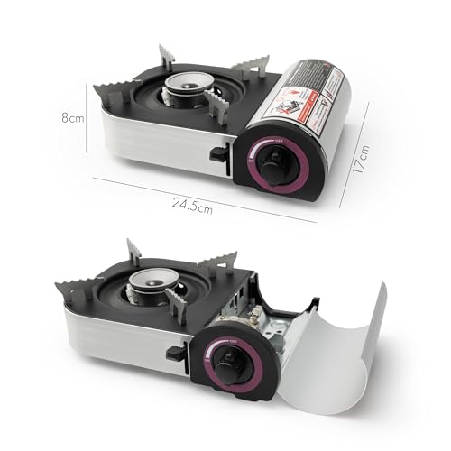 - COMPACT AND POWERFUL: Portable butane gas stove with mini design (24.5x17x8cm), ideal for outdoor cooking or in tight spaces. Despite its size, it offers a strong and stable flame for efficient cooking.