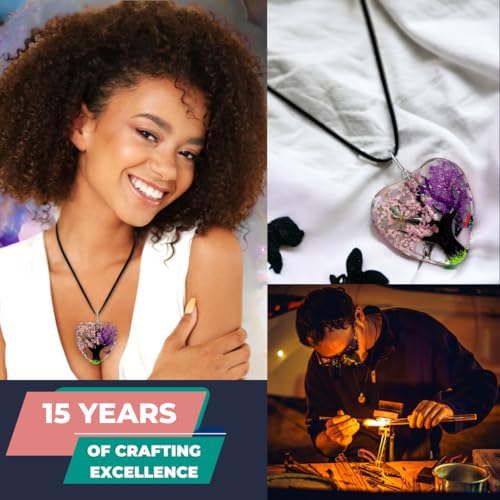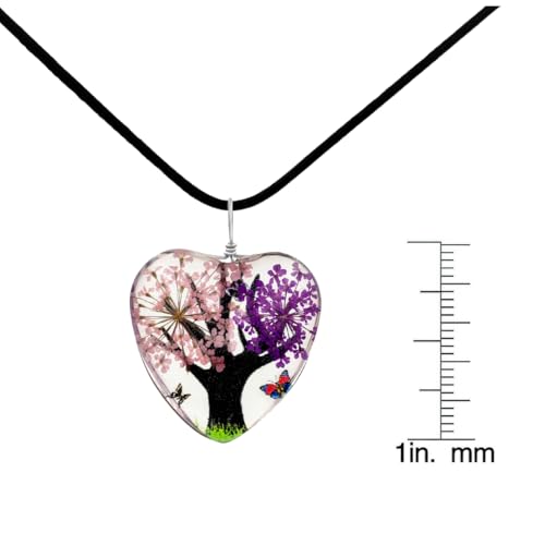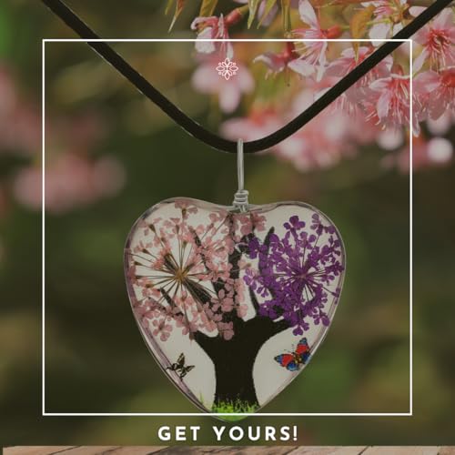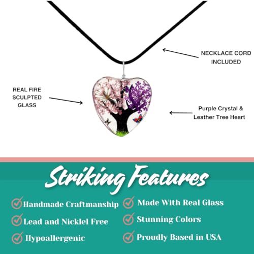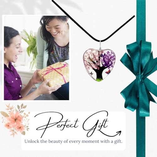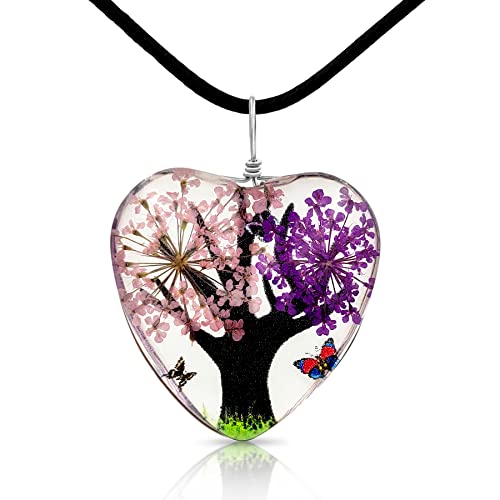 BESHEEK - BESHEEK Pink Purple Flower Tree Heart Glass Pendant Necklace - Fashion Interchangeable Jewelry Set - HYPOALLERGENIC, grass, glass
