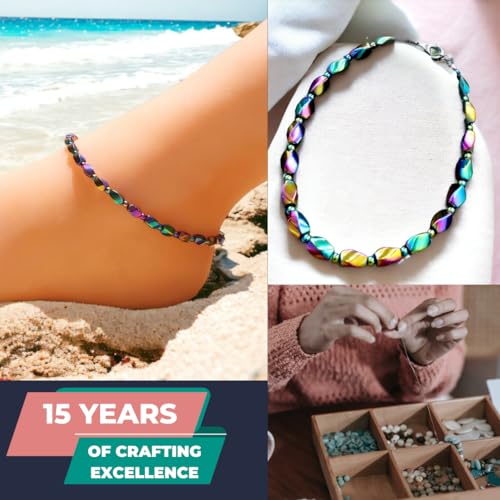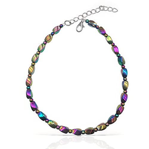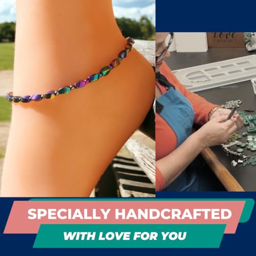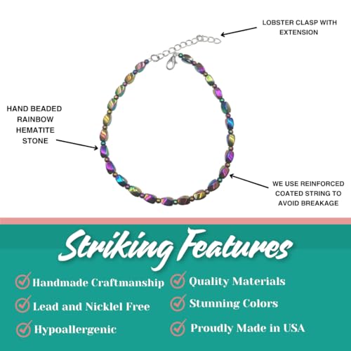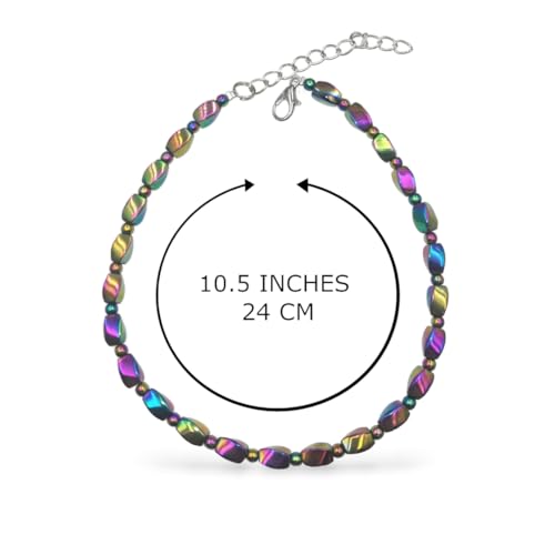 BESHEEK - BESHEEK Rainbow Hue Twisted Hematite and Round Artisan Beaded Anklet with Extension | Handmade Hypoallergenic Beach Gala Wedding Style Jewelry