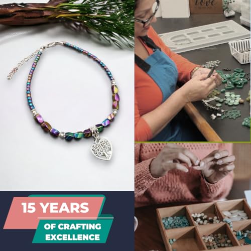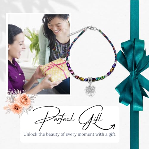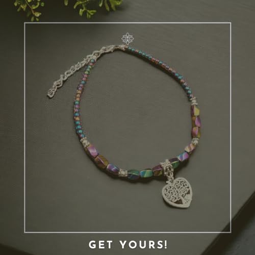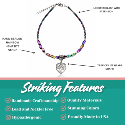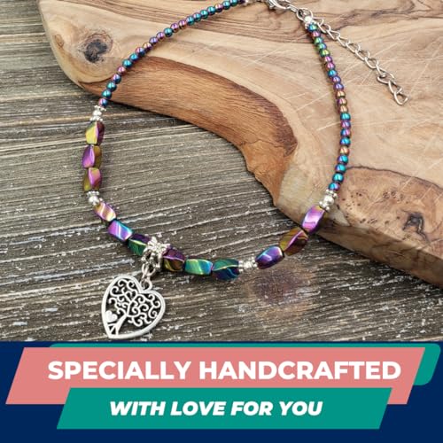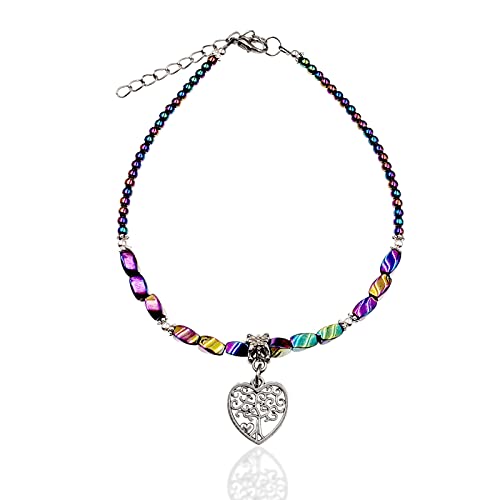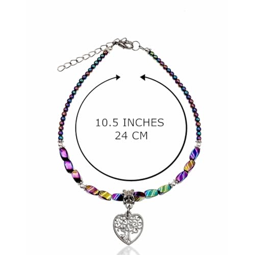 BESHEEK - BESHEEK Rainbow Hue Twisted Hematite and Round Artisan Beaded Tree of Life Heart Shaped Charm Anklet with Extension | Handmade Hypoallergenic Beach Gala Wedding Style Jewelry