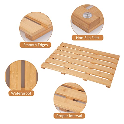 Besilord - Bamboo Shower Bath Mat for Bathroom