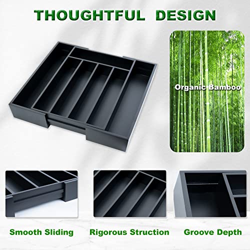 Besilord - Kitchen Silverware Organizer Expandable Black Utensil Holder Adjustable Silverware Drawer Organizer Tray Bamboo Flatware Holder for Drawer
