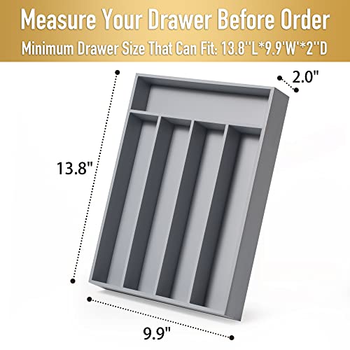 Besilord - Silverware Organizer Kitchen Drawer Organizer Utensil Organizer Bamboo Silverware Holder Cutlery Organizer in Drawer Flatware Organizer Tray(5 slots, Gray