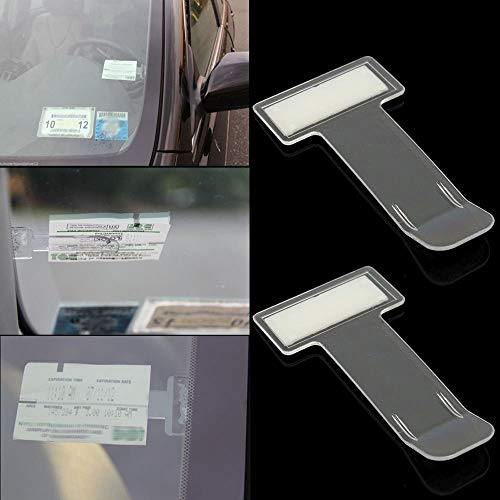 Yuan L Yan No.1 - Best-Bag Car Vehicle Caravan Windscreen Parking Ticket Holder Pack of 2 Clear T-shape Permit Pass Notes Clip Gadget Clip with Adhesive Pads