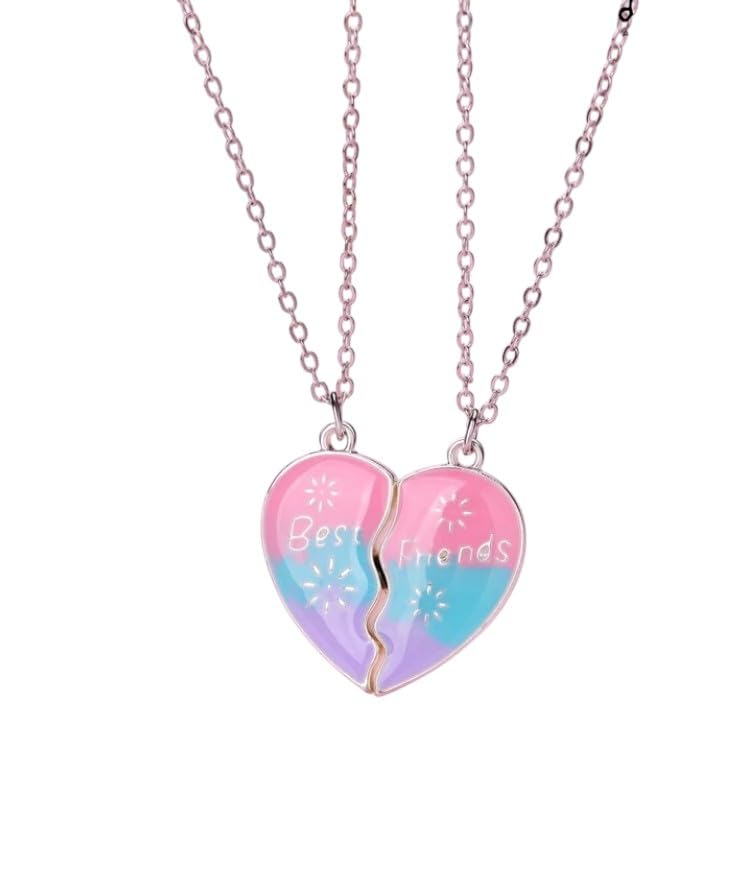 Generic - "BEST FRIENDS" Matching Colorful Enamel Necklaces | Divided Heart Necklace Set for Best Friends | Vibrant Friendship Jewelry for Girls