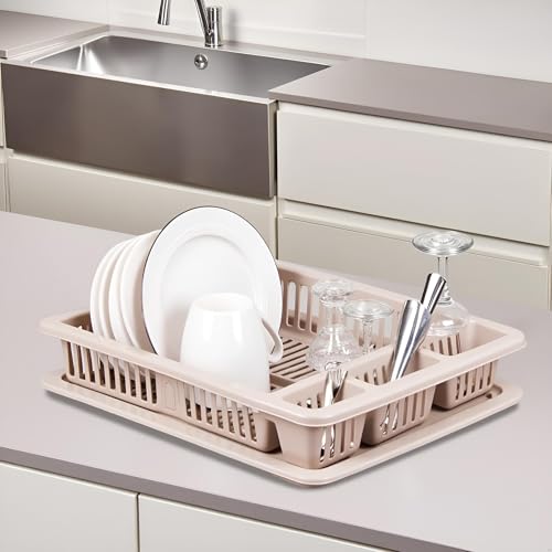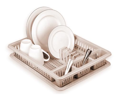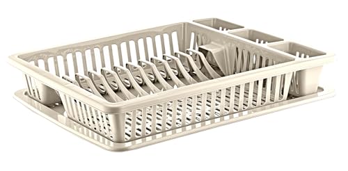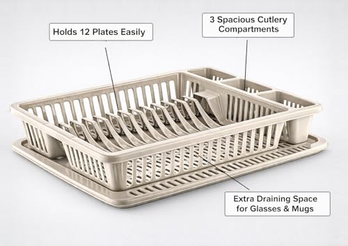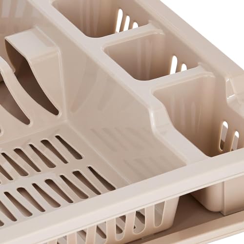 Best House Another Fine Product - Best House Dish Drainer Rack Large Plastic Dish Drainer Plate Cutlery Cup Holder with Drip Tray, Cutlery Rack Kitchen Sink Utensil, Food-Grade BPA-Free - Kitchen Organizer (Cream, Pack of 1)