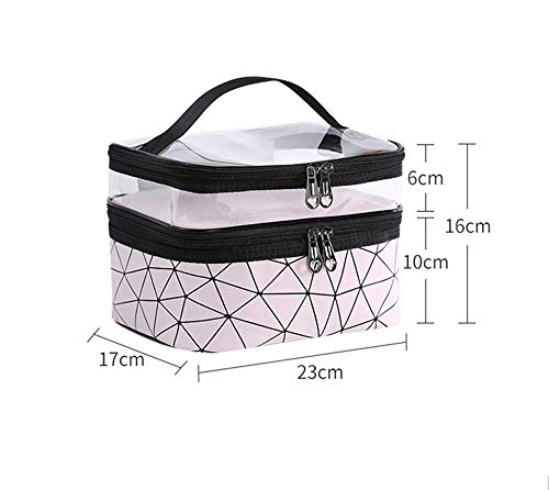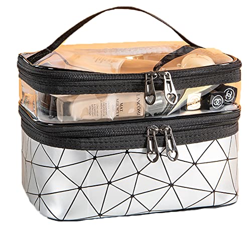 Best lighting - شنطة مزدوجة الطبقات ومقاومة للماء لتنظيم المكياج ومستحضرات العناية، مناسبة للسفر، لون شفاف, فضي, 23*16*17cm، جلد، من بيست لايتينغ