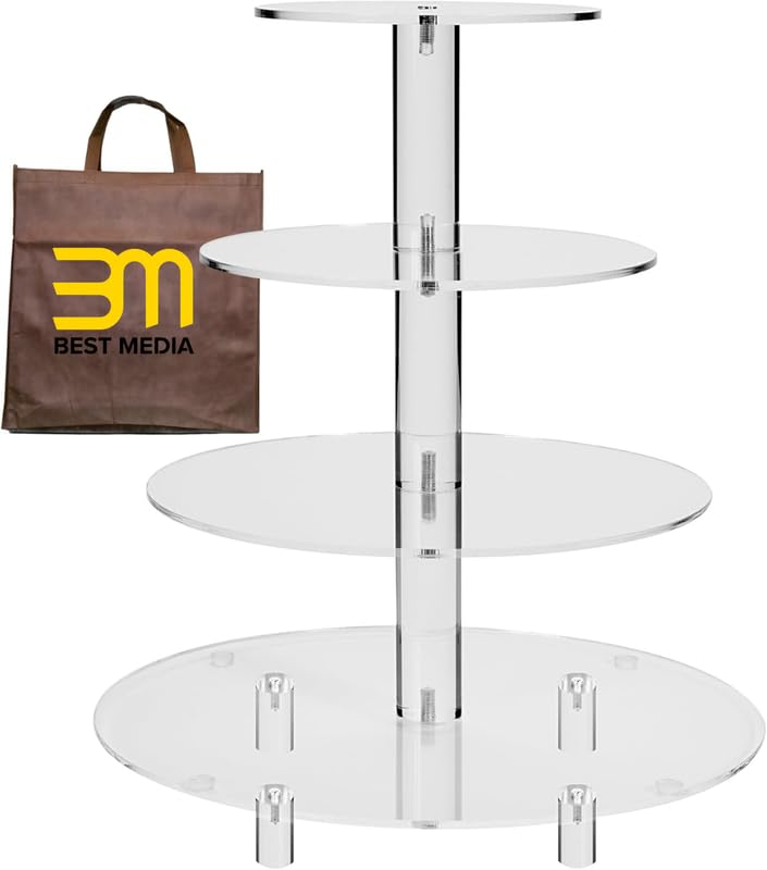 BM Best Media Advertising and Industrial Services - BEST MEDIA 1-Piece 4-Tier Round Acrylic Cake Stand with Rod Feet, 35 cm Tall Display Tower for Cake, Cupcakes, Fruit, Candy, Baby Showers, Weddings, and Home Decor