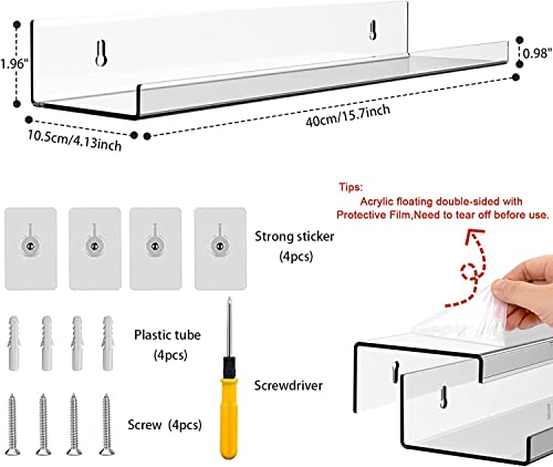 Generic - رف عائم اكريليك شفاف من بيست ميديا 40 × 10 5 سم رفوف عرض الحائط للتخزين للحمام وغرفة المعيشة والمطبخ ارفف للحائط سهل التركيب والاستخدام