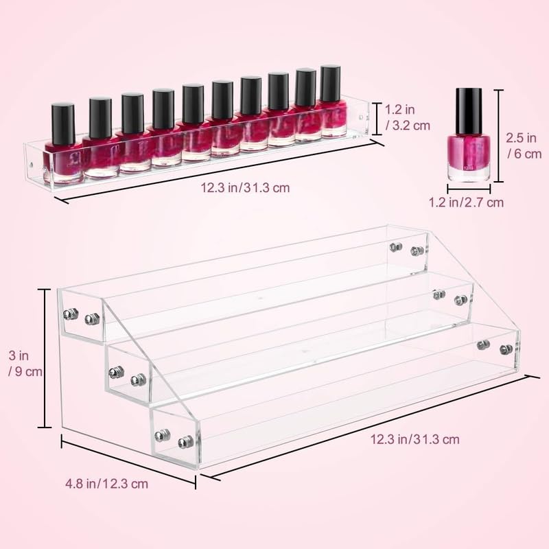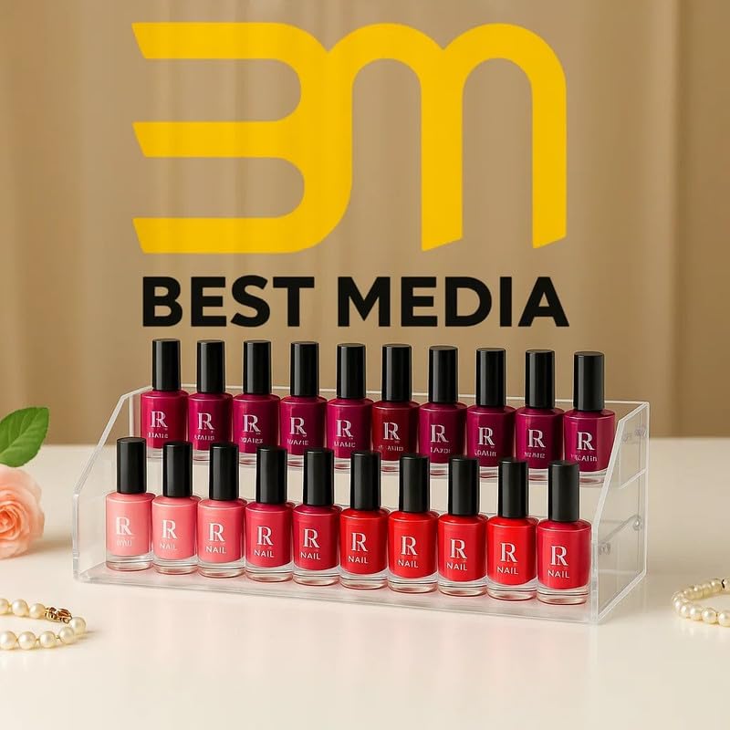BM Best Media Advertising and Industrial Services - BEST MEDIA 3 Tier Acrylic Nail Polish and Sunglass Organizer, Holds 39 Bottles, Clear Countertop Display Rack for Essential Oils, Jewelry, and Eyeglasses, Multi-Purpose Tabletop Stand
