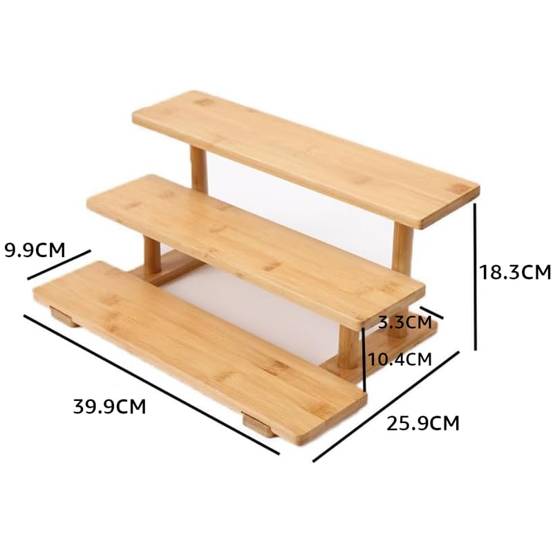- تصميم موفر للمساحة: يعمل التصميم المتدرج ثلاثي المستويات على زيادة التخزين الرأسي على سطح الطاولة، مما يسمح لك بتنظيم وعرض عدد كبير من العناصر مع الحفاظ على مساحتك مرتبة ومرتبة.