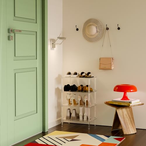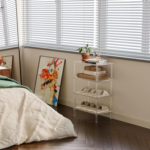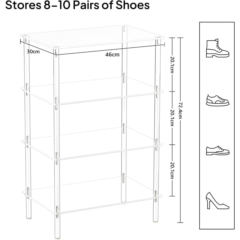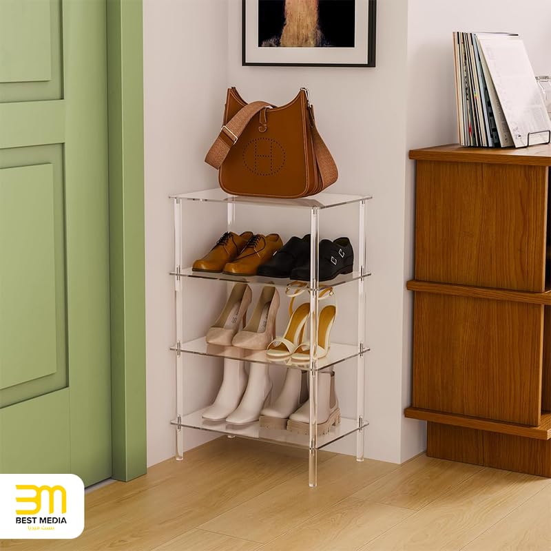 BM Best Media Advertising and Industrial Services - BEST MEDIA 4-Tier Acrylic Shoe Rack, 46L x 30W x 72.4H cm, Clear, Narrow Space-Saving Organizer, Modern Minimalist Vertical Storage Shelf for Front Door, Entryway, and Closet