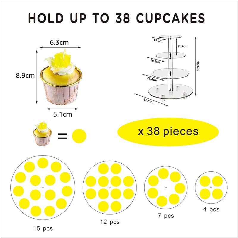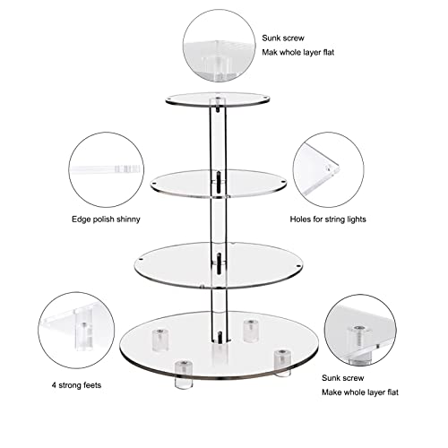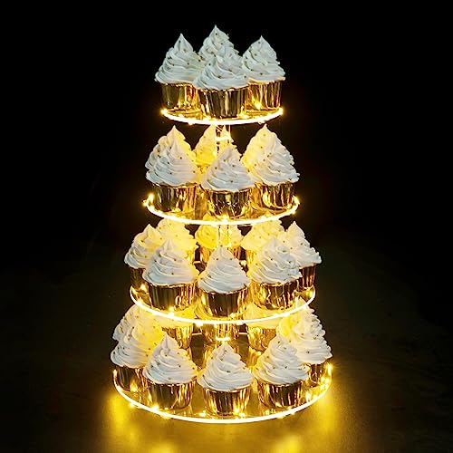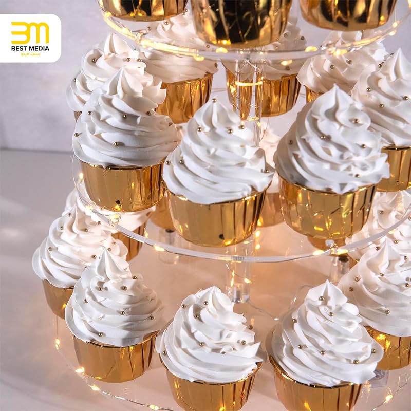 BM Best Media Advertising and Industrial Services - BEST MEDIA 4-Tier Round Acrylic Cupcake Stand with an LED Light String, a Cupcake Holder Tower Display for a Wedding or Birthday Party- Modern - 1 Piece - Yellow Light