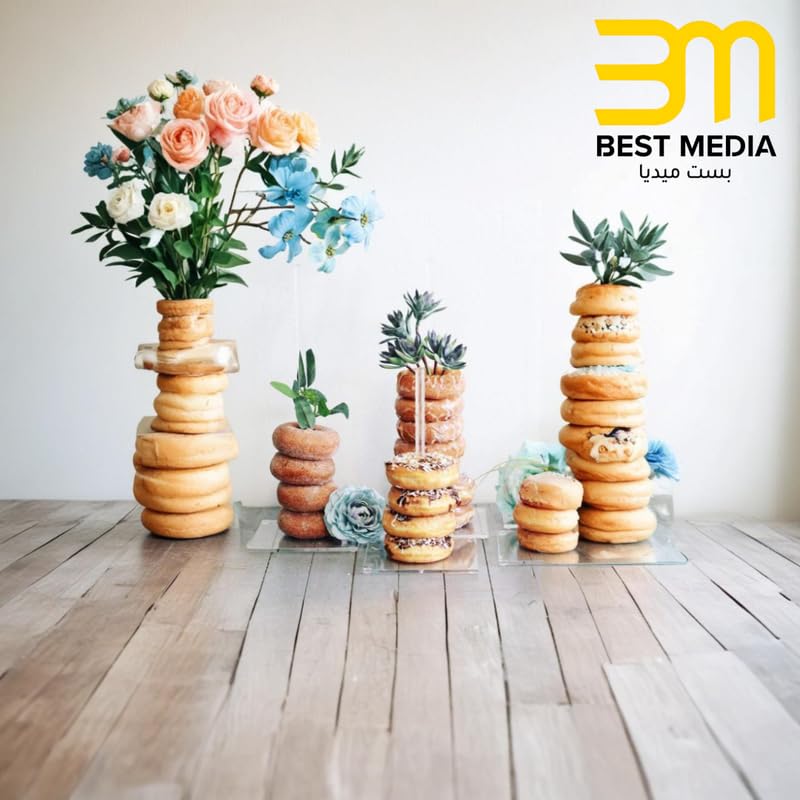 BM Best Media Advertising and Industrial Services - BEST MEDIA Acrylic Donut Stand Set of 6, Clear Removable Display Stands, Non-Slip Base, 25cm and 39cm Donut Bar Holder for Wedding Birthday Party Dessert Table Bagels Pretzels Decor