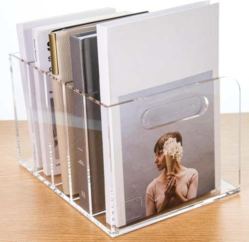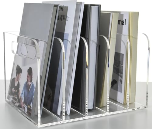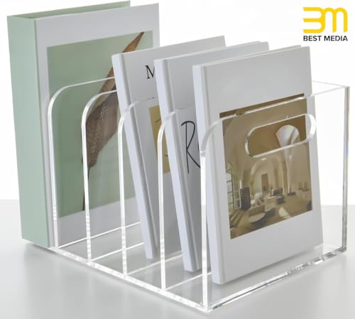 BM Best Media Advertising and Industrial Services - BEST MEDIA Acrylic File Organizer, Vertical Document Sorter, Clear Desktop Storage Bin for Magazines, Binders, Folders, Heavy Duty Office Organization Supplies, 25.5Dx19Wx16H cm, 5-Slot