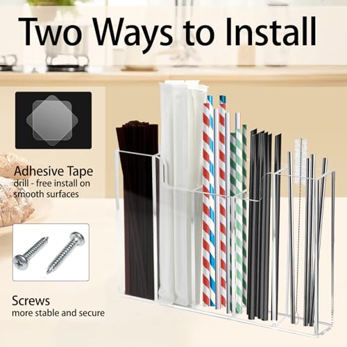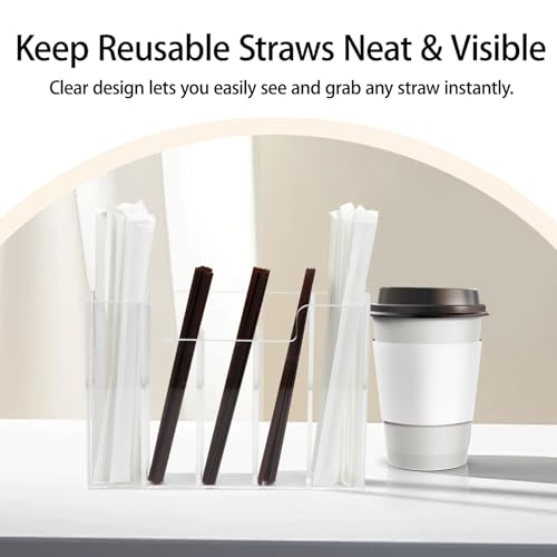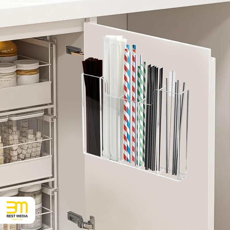 BM Best Media Advertising and Industrial Services - BEST MEDIA Acrylic Straw Holder, 5 Slot Straw Dispenser Organizer with Countertop or Cabinet Installation, Straw Storage Rack for Kitchen Café Bar, Space Saving Clear Organizer - Transparent