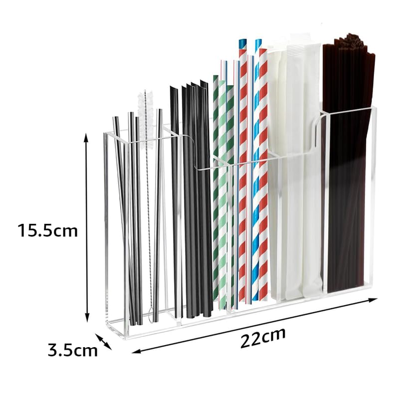 - 5 Divided Compartments: Offers five separate slots to store straws by type or color — ideal for cafes, kitchens, and party drink stations.
