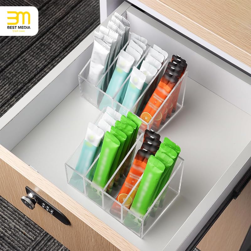 BM Best Media Advertising and Industrial Services - BEST MEDIA Acrylic Water Flavor Packet Organizer, Clear Storage Container with Removable Dividers for Drink Mixes, Kitchen Cabinet and Fridge Packet Holder Basket, Clear