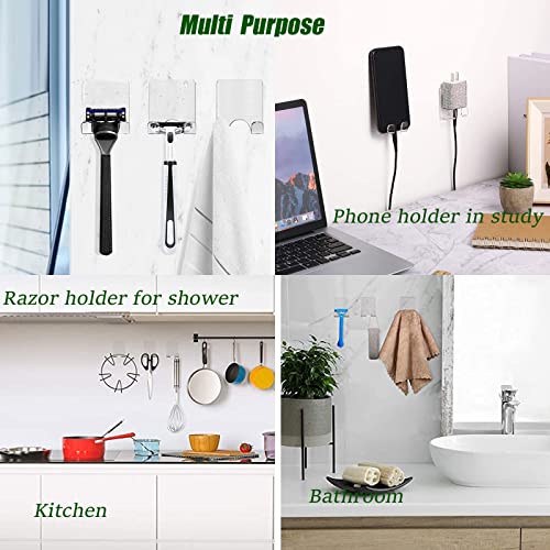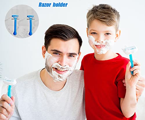 - ULTIMATE SHOWER ORGANIZATION: This versatile 4-pack of clear adhesive hooks is engineered to bring order to your shower space. Each hook is perfectly designed to hold a wide array of items, including razors, smartphones (in a waterproof bag), loofahs, washcloths, and even power plugs. Keep your surfaces clear and your essentials neatly hung, accessible, and away from puddles of water for a more streamlined and functional bathroom.