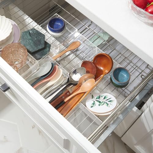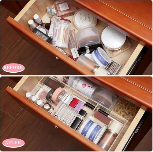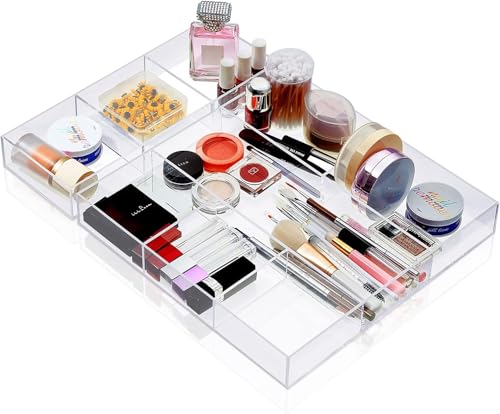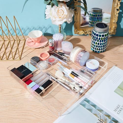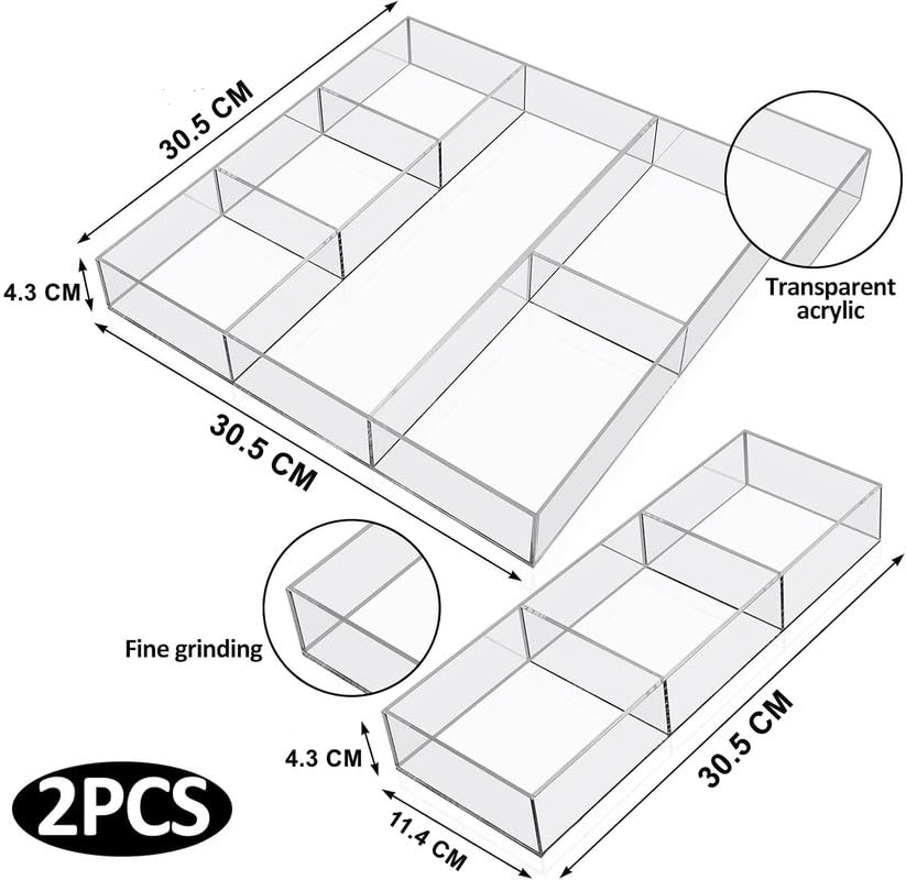 BM Best Media Advertising and Industrial Services - BEST MEDIA Clear Acrylic Drawer Organizer Set of 2, 6-Section and 3-Section Divided Trays, 30.2 x 30.2 x 4.3 cm and 30.2 x 11.4 x 4.3 cm, Makeup and Desk Storage for Bathroom Kitchen or Office Use