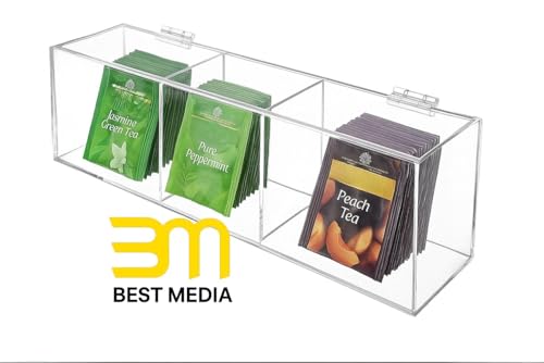 BM Best Media Advertising and Industrial Services - BEST MEDIA Clear Acrylic Tea Bag Organizer with Hinged Lid, 35 x 10 x 8 cm Storage Caddy with 5 Compartments, Countertop Box for Assorted Teas Condiments and Sugar Packets
