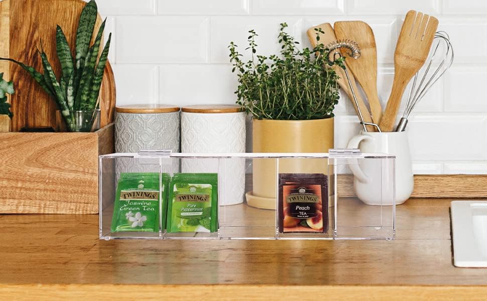 - Five-Compartment Layout: Features five equal compartments — perfect for sorting tea bags by flavor, sugar packets by type, or condiments for quick access.