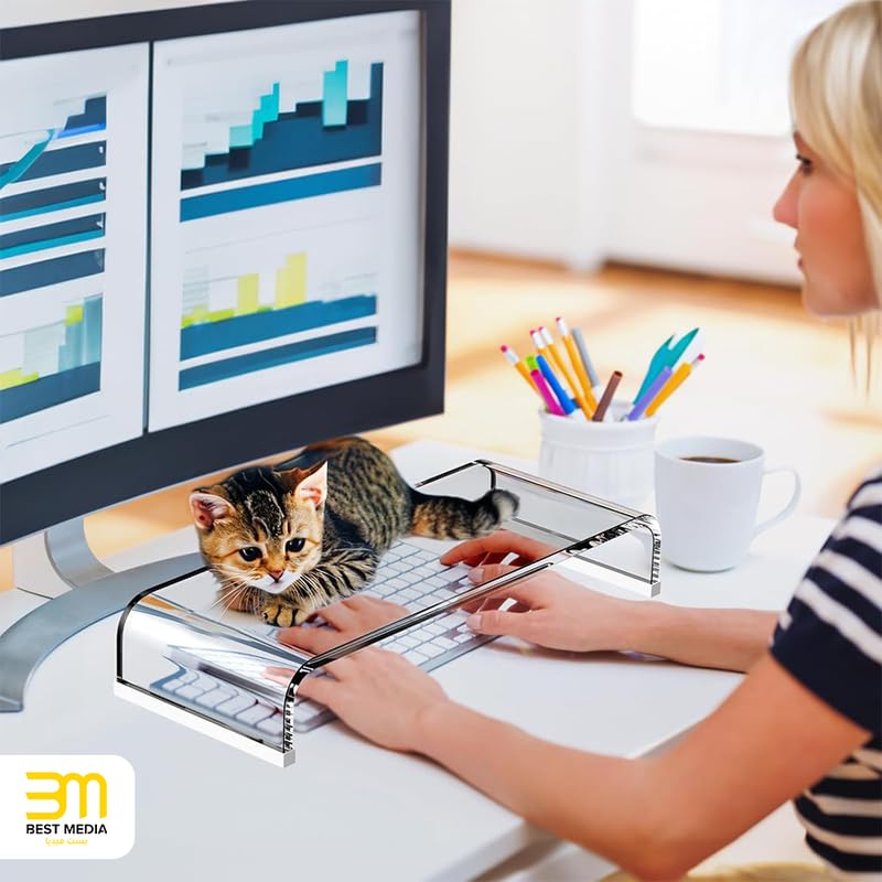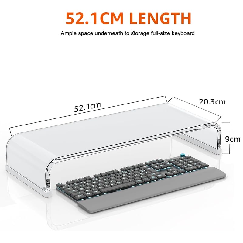 BM Best Media Advertising and Industrial Services - BEST MEDIA Premium Acrylic Monitor Stand Riser, a Transparent Computer Monitor Stand for a Laptop PC, an Ergonomic Computer Riser for Desk- 52-1 cm - Premium - 1 Piece - Transparent