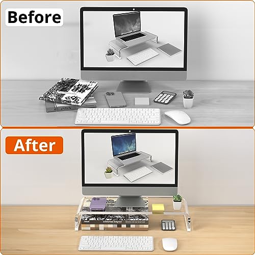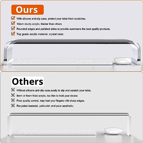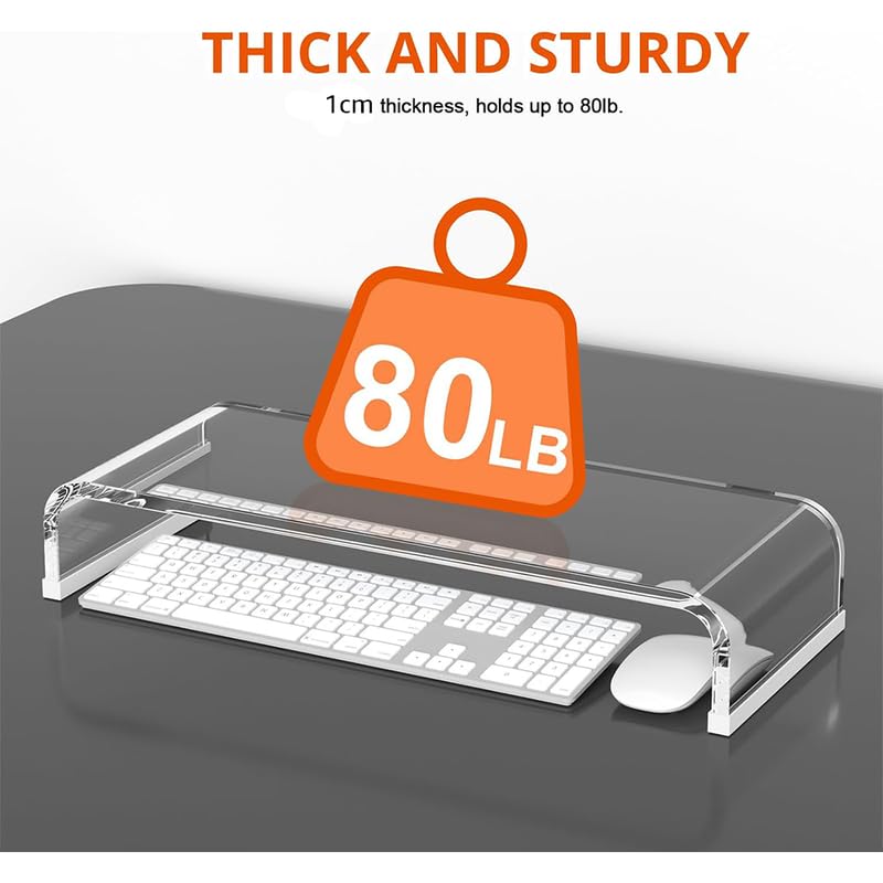 - Premium & Sturdy Acrylic: Constructed from a single piece of thick, high-grade transparent acrylic for exceptional stability and durability, easily supporting most monitors, laptops, and printers without wobbling.