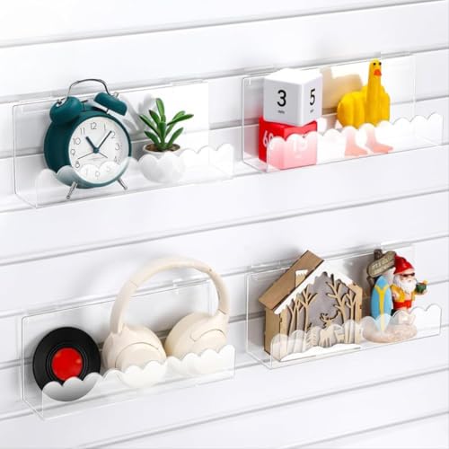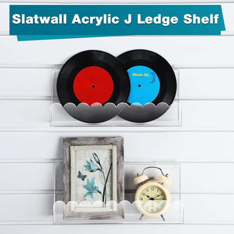 BM Best Media Advertising and Industrial Services - BEST MEDIA Slatwall J-Ledge Shelf, Wavy Design Acrylic Display with Lip, 30.48 cm Width 4 Pack, Clear, Retail Boutique & Home Storage, Heavy Duty Floating Panel Shoe Rack & Organization