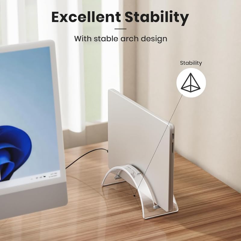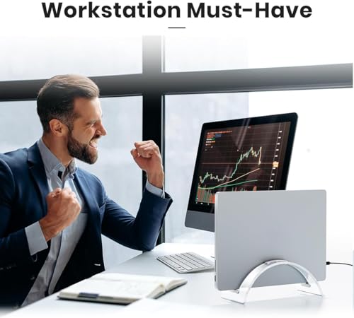 - Holds your laptop in a vertical, upright position to maximize desk space, creating a tidy and efficient workstation perfect for users with external monitors, keyboards, and mice.