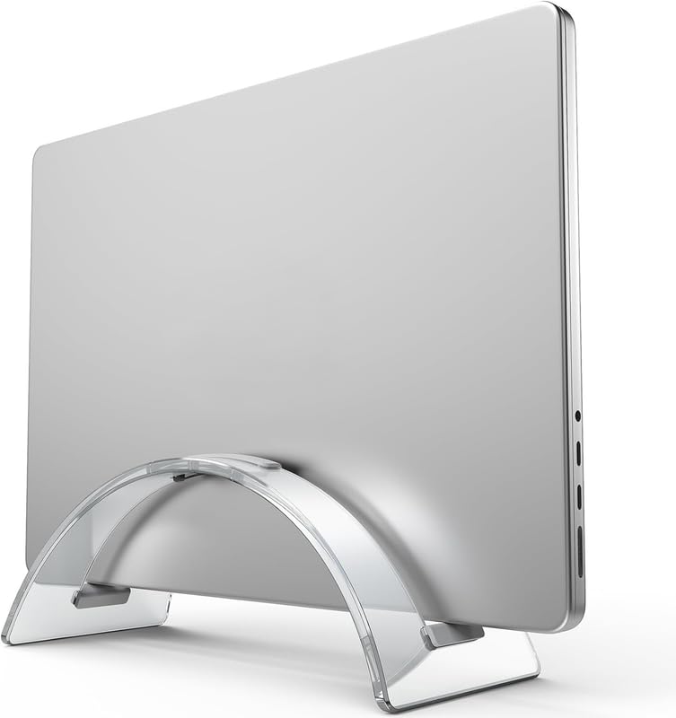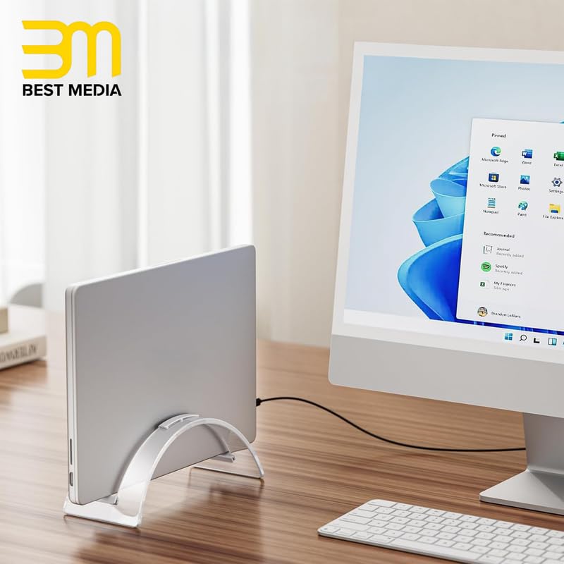BM Best Media Advertising and Industrial Services - BEST MEDIA Vertical Laptop Stand for Desk, Space-Saving Acrylic Desktop Notebook Dock and Holder, Organizer for MacBook, Surface, and HP Laptops - 15L x 9W x 5H cm - Single Slot - 1 piece - Clear