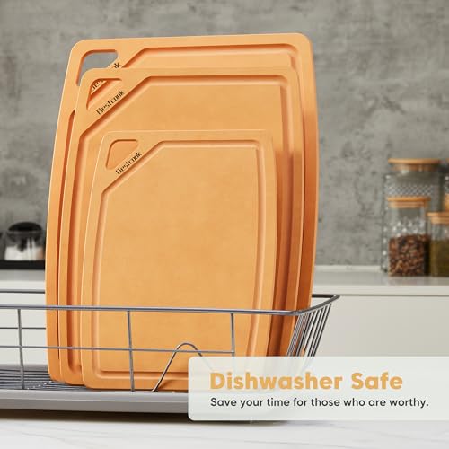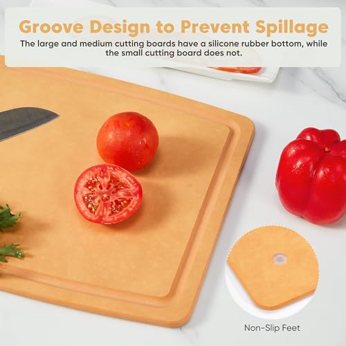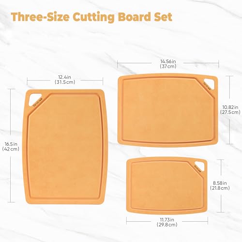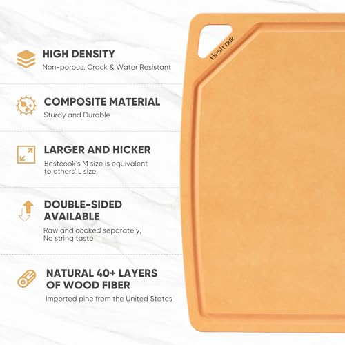 - Durable & Reversible: Made from premium wood fiber material, Bestcook cutting boards offer exceptional durability that withstands daily use without warping or cracking. The reversible design extends the life of the boards, giving you double the usage and versatility for all your cutting tasks.