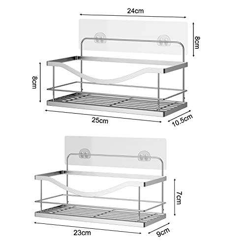 - 【2 pieces shower tray】Large: 24.5 × 10.5 × 10.5 cm, small: 23 × 9 × 9.5 cm, 4 x movable hooks for hanging sponge or towels.The shower basket suction cup is easy to remove from the hooks of the adhesive surface to facilitate cleaning or other placement.