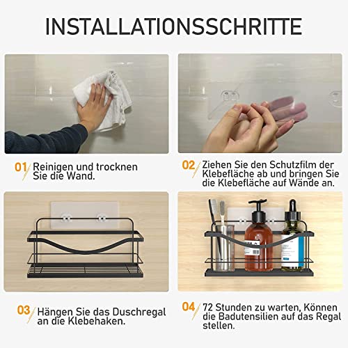 - Rustproof shower shelf: the self-adhesive shower basket is made of high-quality SUS304 stainless steel, waterproof and durable, rust-proof, without drilling. For smooth hard walls such as cement walls, tiles, glass, marble, etc.