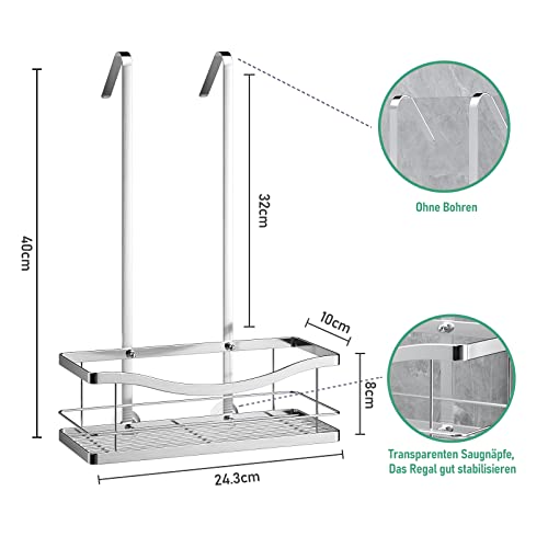 - الحجم المثالي: الطول الكلي للسلة المعلقة: 40 سم، عرض الخطاف: 3 سم، رف دش الحمام: 24.3 × 10 × 8 سم (الطول × العرض × الارتفاع)، مناسب للجدران الزجاجية وأبواب الحمام حتى 5 سم.