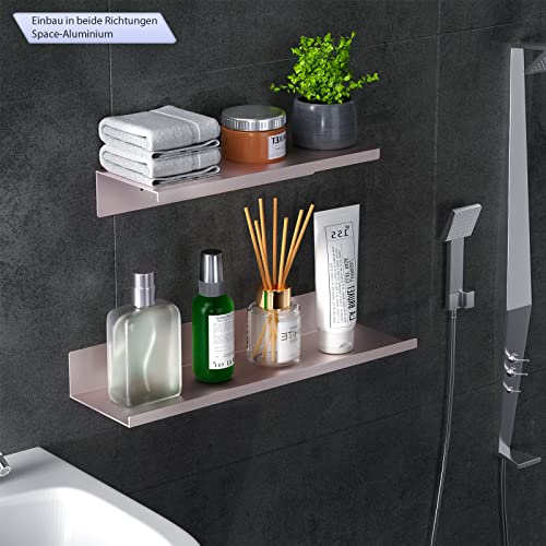Bestdon - Shower Shelf, No Drilling, Pack of 2, Shower Shelf, Bathroom Shelf, Aluminium Wall Shelf, Self-Adhesive Bathroom Shelf for Bathroom, Rustproof, Rose Gold