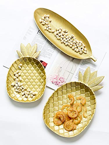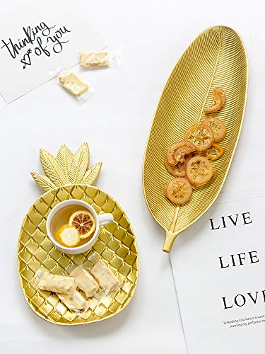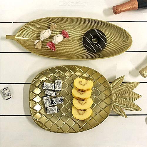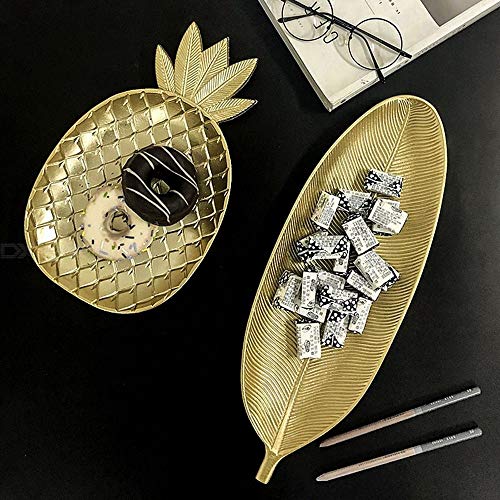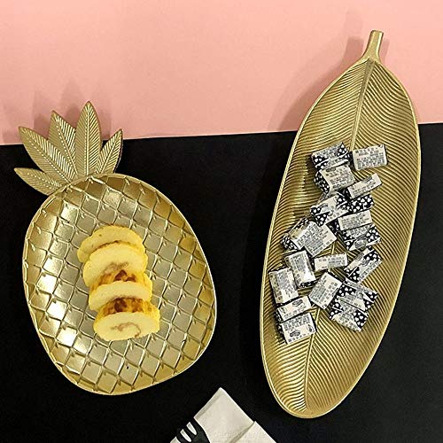 Spaceshoop - اطباق عشاء خشبية ذهبية من بيست مابل صينية تقديم على شكل اوراق شجر او اناناس للحفلات المنزلية صديقة للبيئة مقاس كبير سيراميك خشب عدد القطع: 2 متعدد الالوان