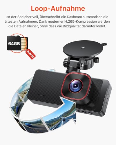Bestsee - كاميرا تابلوه امامية وخلفية وداخلية من بيست سي بدقة 1080P مع بطاقة SD 64GB، مع مراقبة ركن السيارات، كشف الحركة، رؤية ليلية بالاشعة تحت الحمراء، مقياس تسارع، تسجيل متواصل، نطاق واسع، زاوية عرض